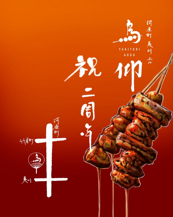焼き鳥屋開店告知チラシグラフィックデザインつくったものつむぐ。デザイン。