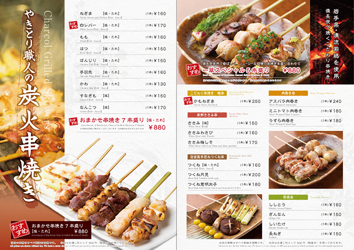 炭火やきとり「一翠」様 メニュー福岡で居酒屋・飲食店のメニュー表デザイン制作は 店舗販促応援隊。
