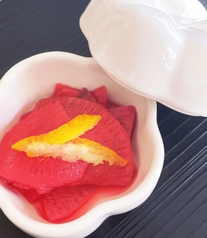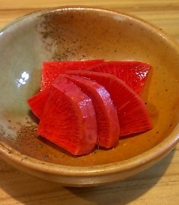 京むらさき大根の甘酢漬け。