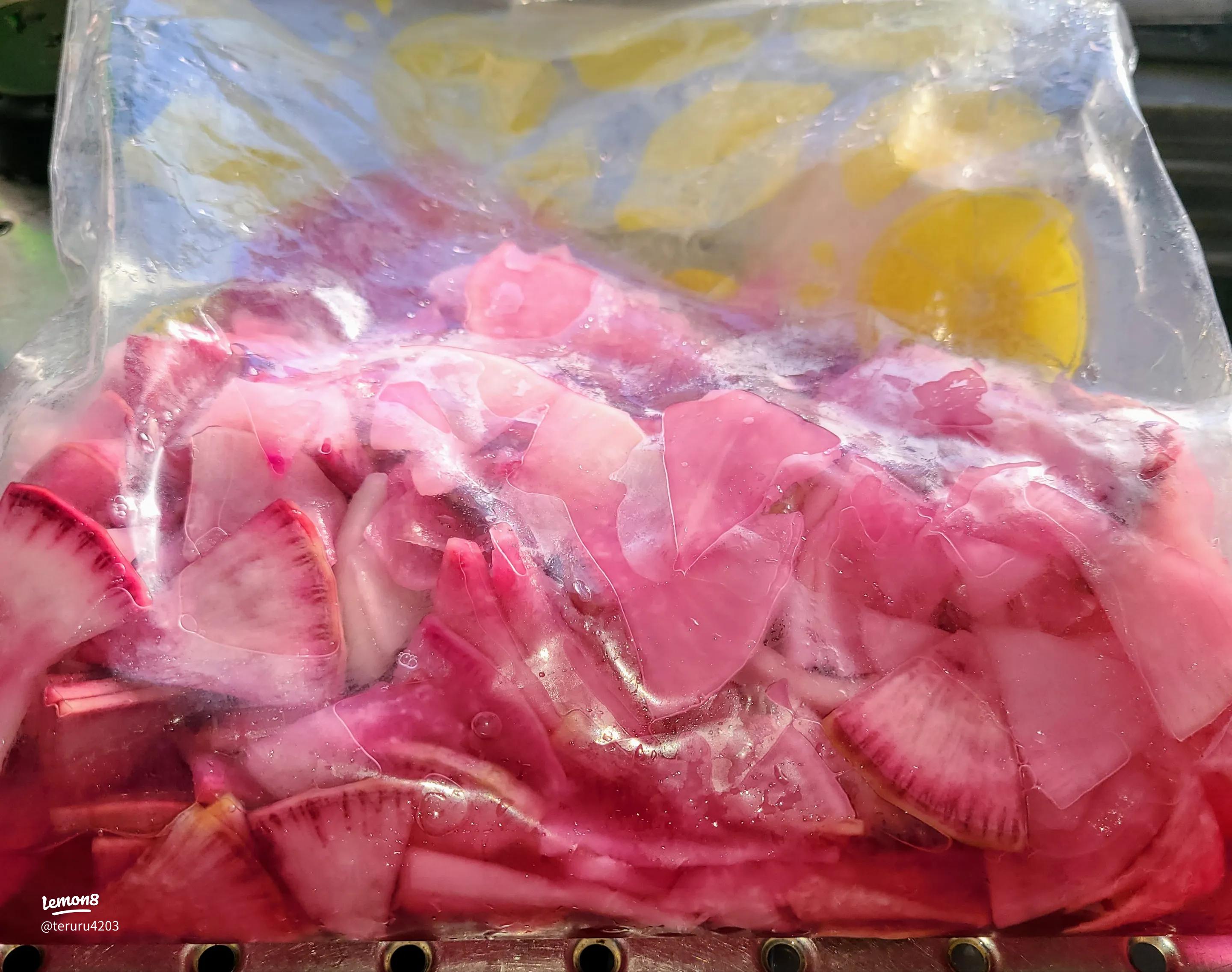 袋で簡単!紫 赤 大根の甘酢漬け。
