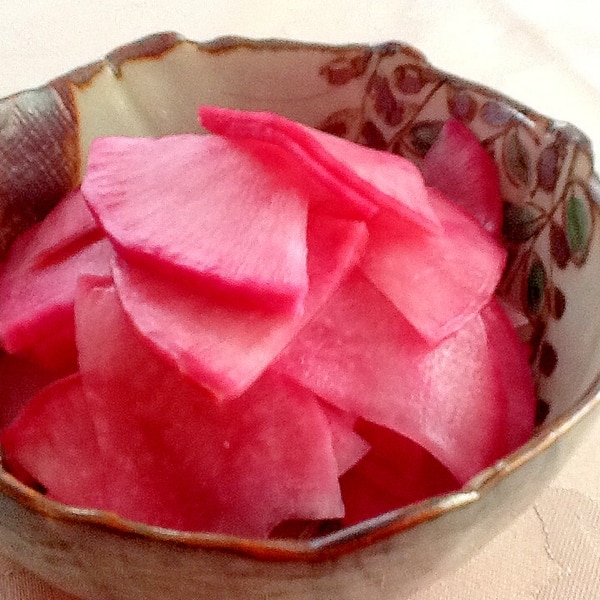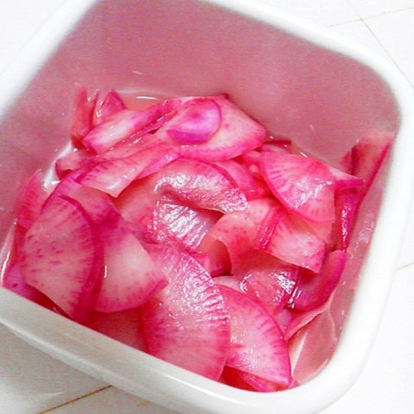 綺麗なピンク色☆紫大根の甘酢漬け。