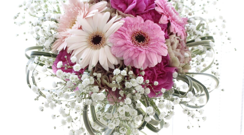 かすみ草と千日紅のピンクブーケPluie Flower。