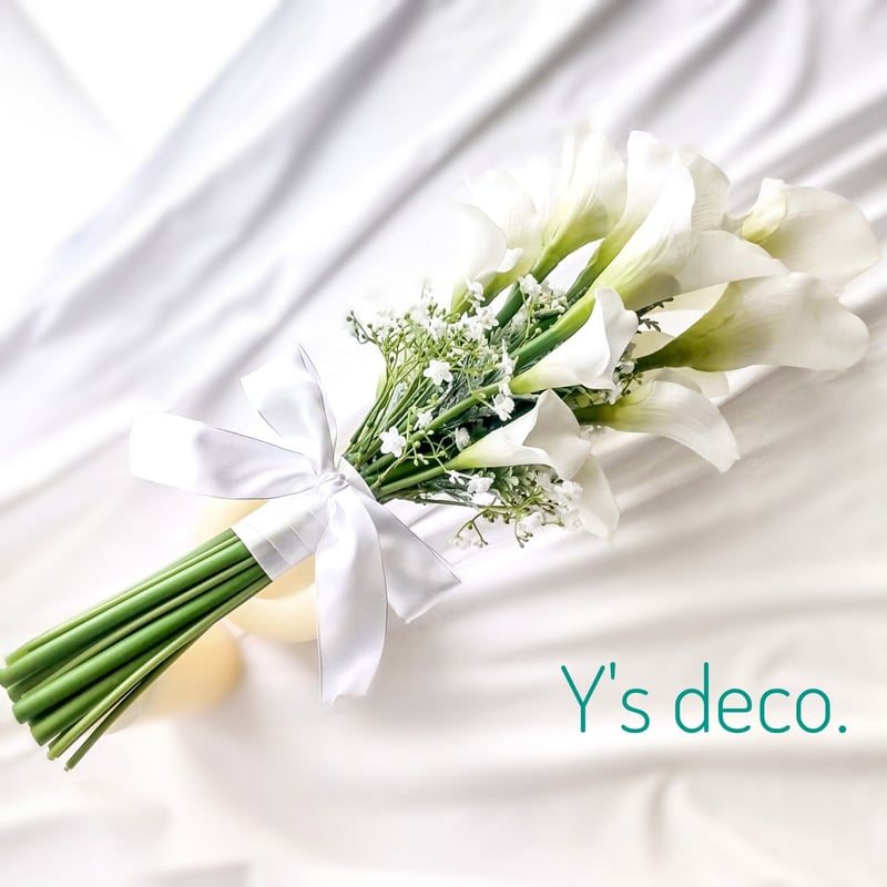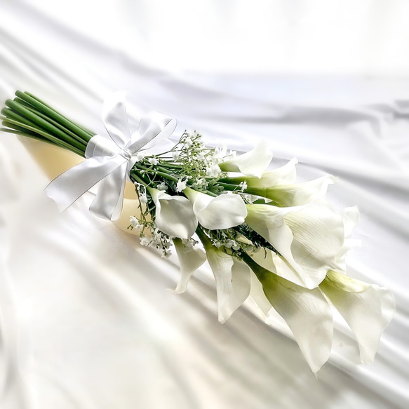 生花に見えるカラー かすみ草 白 ウェディングブーケ 造花ブーケ アーティフィシャルフラワー アームブーケ高級造花 ブーケ ysde-co 通販13841916Creema クリーマ。