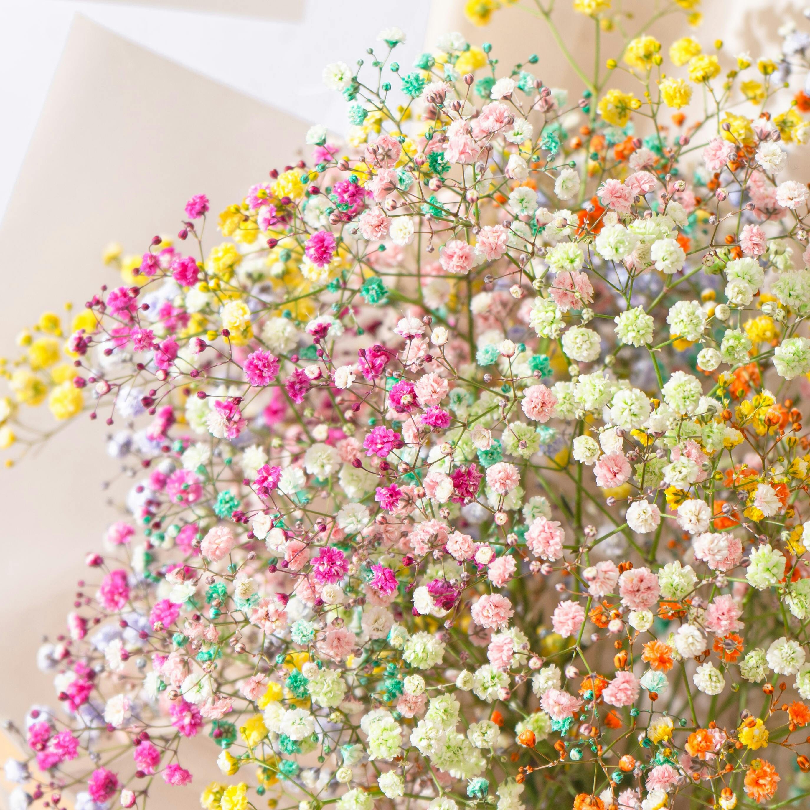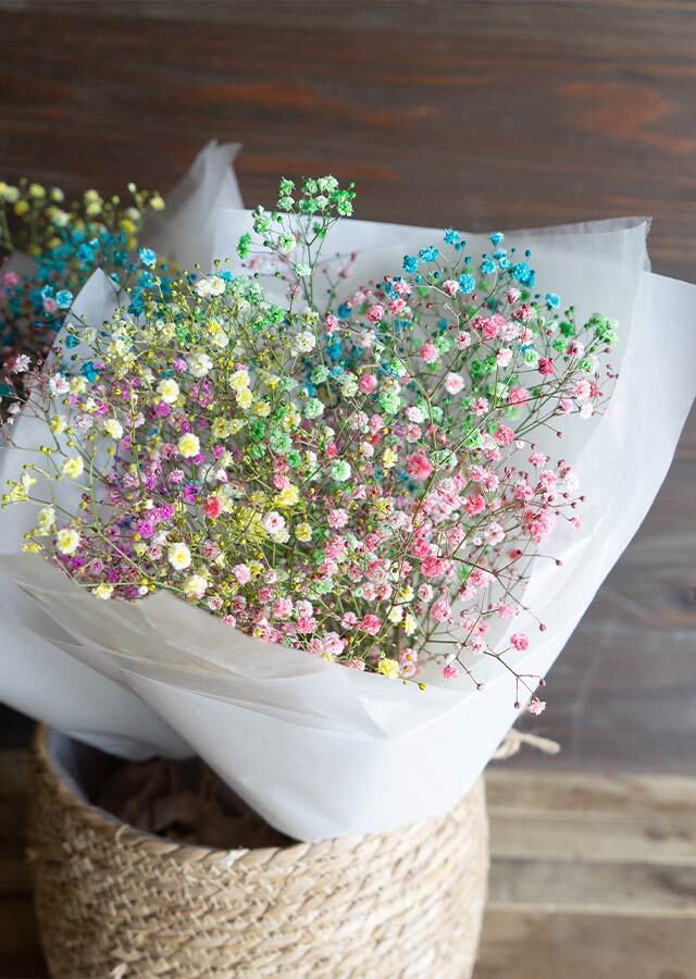 カラフルなかすみ草のブーケ「レインボーコットンキャンディ・ブーケ」 – &YOUKAENアンドユーカエン。