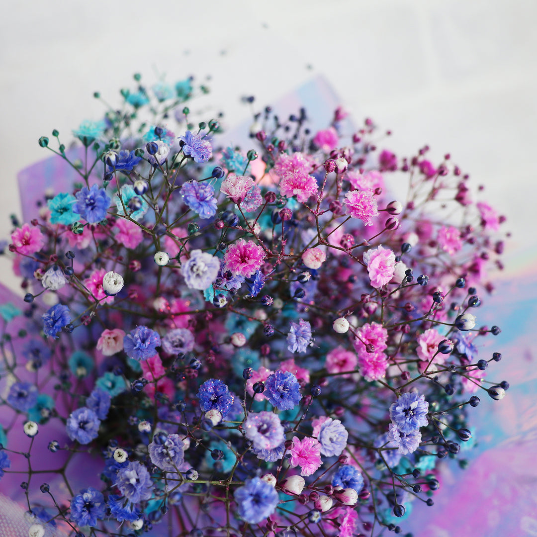 レインボー&ブルー&ピンクグラデーションのかすみ草ブーケ - 大阪 江坂のフラワースタジオ MORIYA。