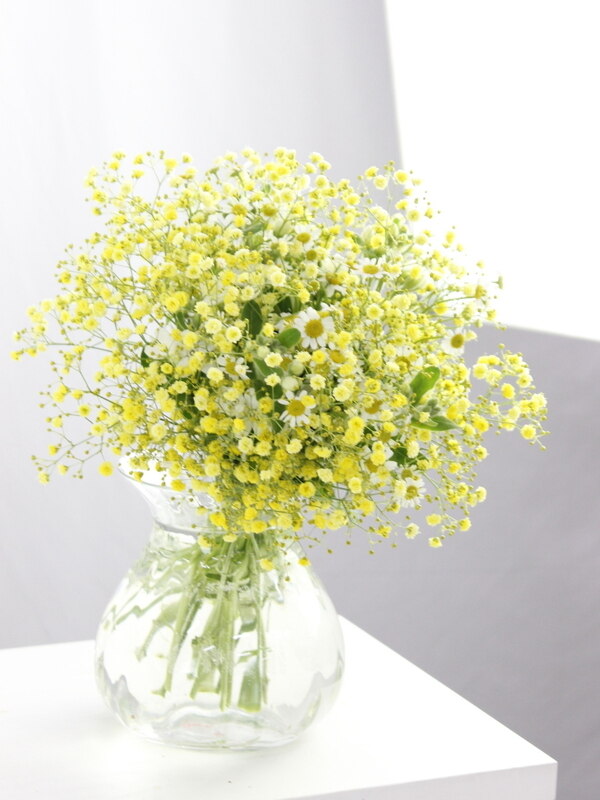 黄色のかすみ草で小花ブーケFla-co フラコ- フラワーアレンジ作品投稿サイト。