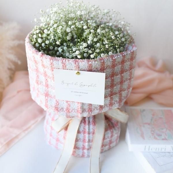 EC限定 生花 かすみ草ブーケM -ピンク- – karendo online shop。