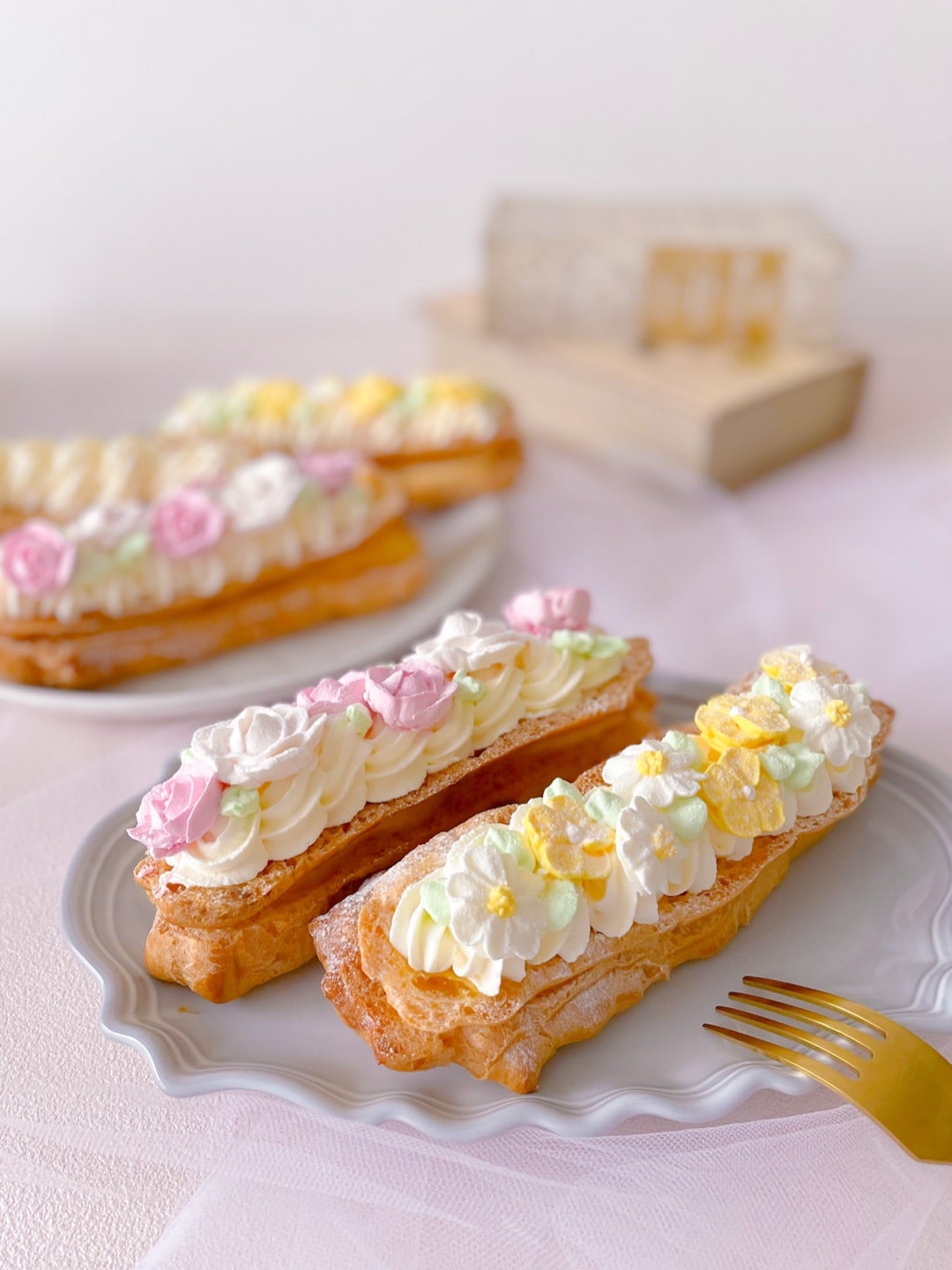 貴重な休日!お花のエクレアを作りました♡栃木県宇都宮市アイシングクッキー教室♡プレゼントしたくなる!可愛いお菓子が作れます♡。
