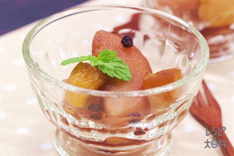 さわやかな甘さがたまらない杏の白ワイン煮。
