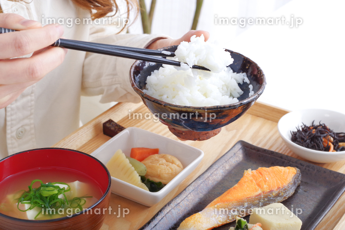 和食の食事をする女性の写真素材217871321 毎月1点無料 フリー のストックフォト イメージマート。