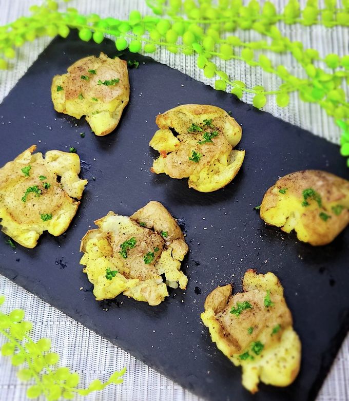 潰して焼くだけ!スマッシュポテト - おすすめレシピダイエー食の情報。