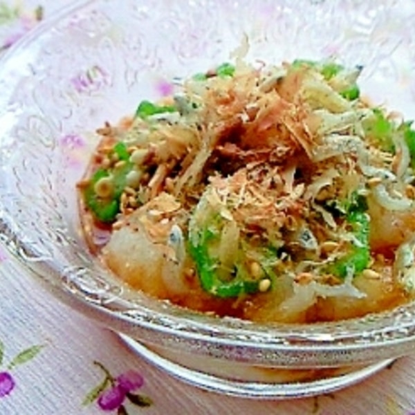 さっぱり!大根おろし+オクラ・胡麻・じゃこ・鰹節。