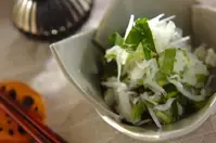 箸休めに~水菜・ちりめんじゃこの大根おろし和え。