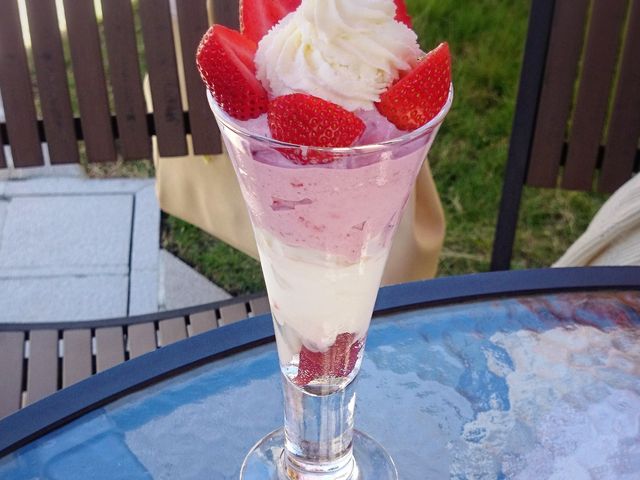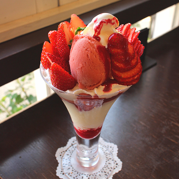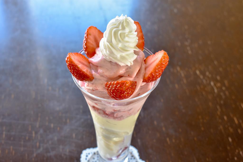 スイーツ オルソンさんのいちごパフェ<木の花美術館 オルソンさんのいちご>自然の恵みが詰まったイチゴスイーツを堪能南都留郡のおすすめグルメなら旅色。