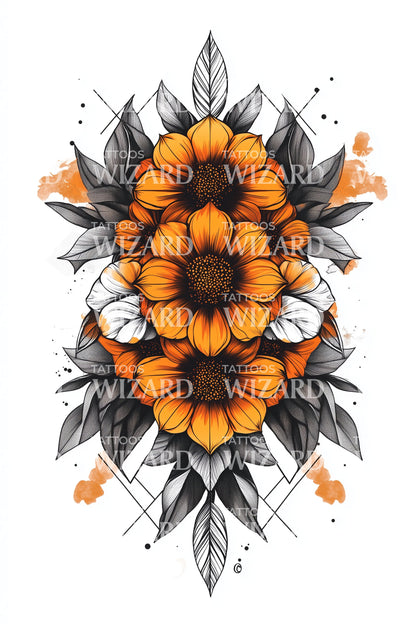 オレンジデイジークラスタータトゥーデザイン – Tattoos Wizard Designs。