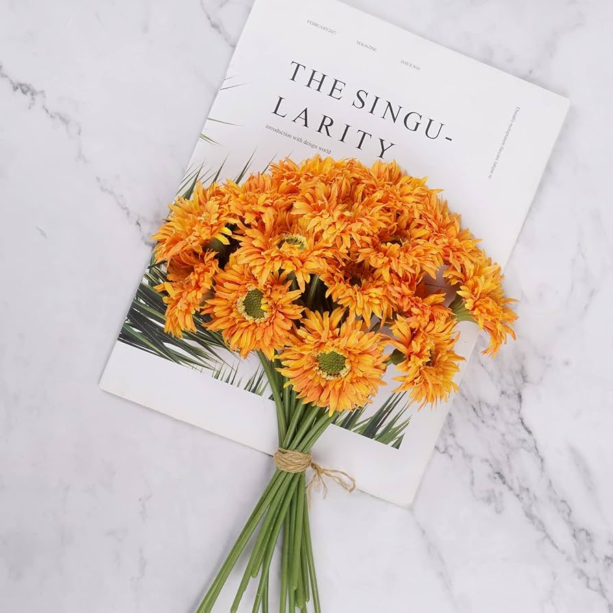 AmazonDolicer ガーベラデイジーフラワー 15個 オレンジデイジーシルクフラワー リアルなデイジー バルクフェイクデイジーシルクフラワーホームガーデンパーティー DIY装飾 花嫁ウェディングブーケ 秋 感謝祭 10.75インチ造花 オンライン通販。