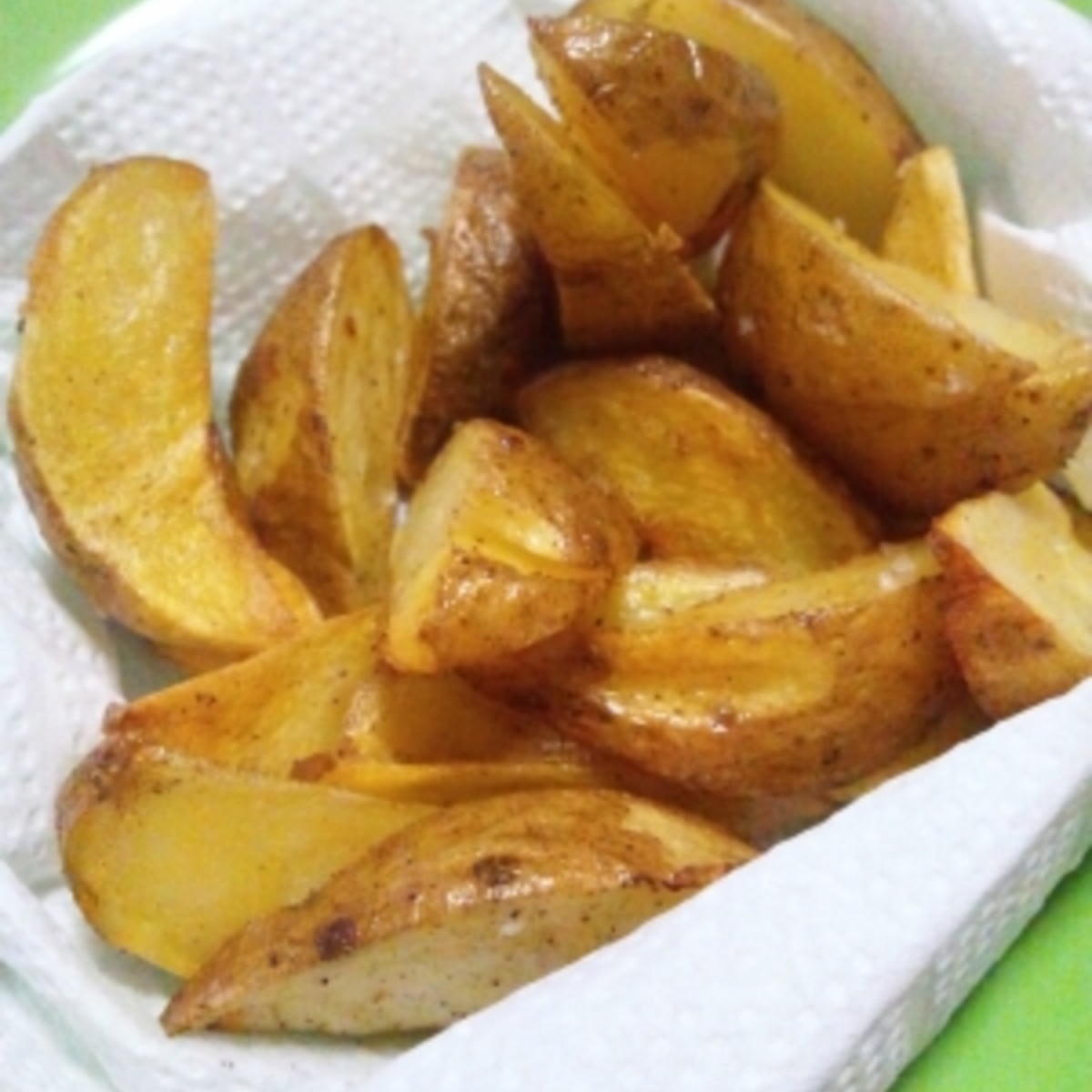 まるみキッチン 簡単レシピon X: " 揚げずに作れる!フライドポテト①ジャガイモを8等分カット②耐熱レンジに移し、水を大さじ1いれたらラップして600wで4分チン ③温まったジャガイモの水っけを軽くふき片栗粉をまんべんなくまぶす④サラダ油をひいた。