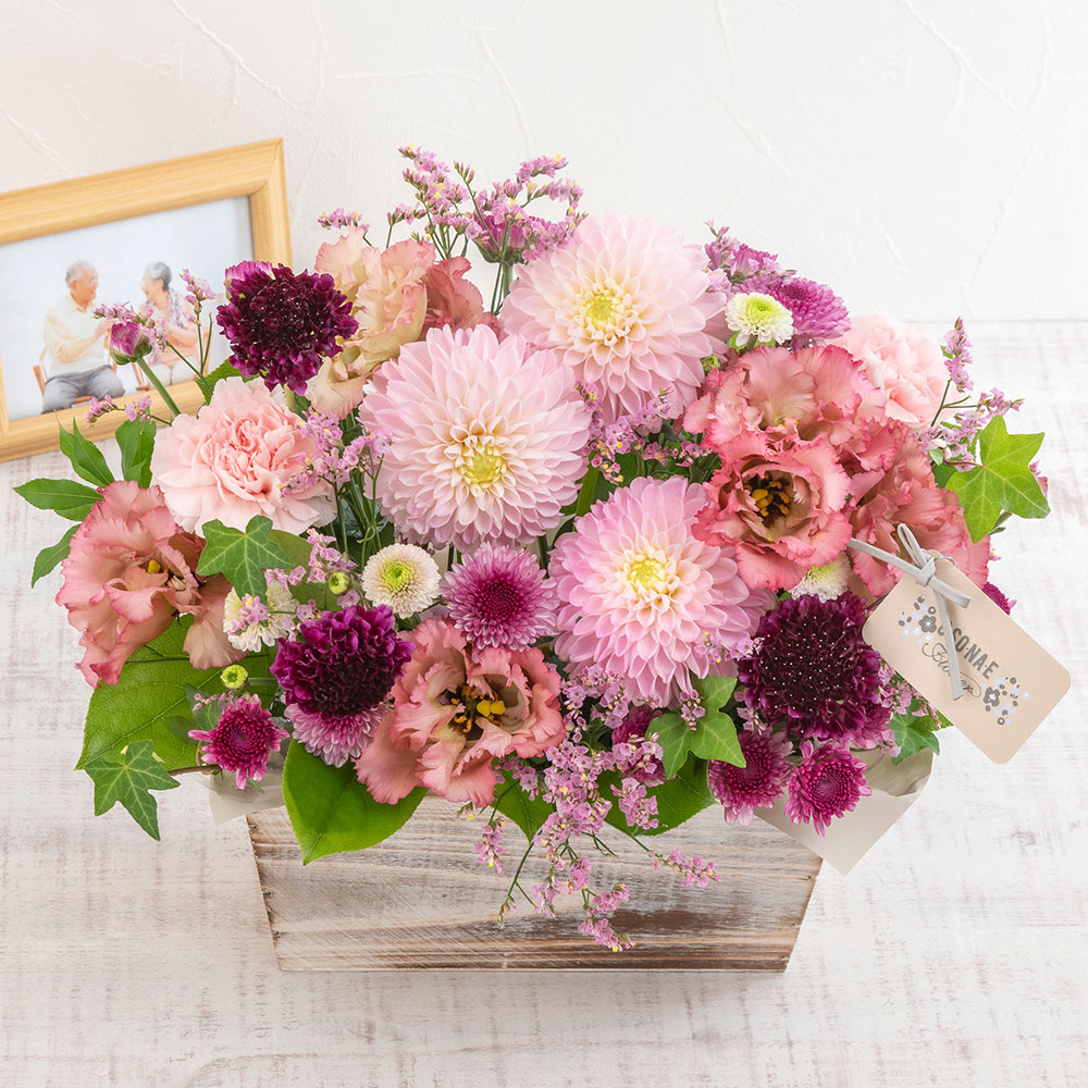 お供え用O・SO・NA・E flower「10月のウッドボックスアレンジメント」花・花束を贈るフラワーギフト通販の 日比谷花壇 公式。