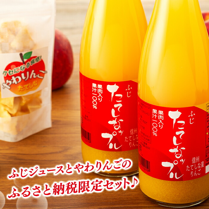 たてしなップル 長野県産 果肉入り完熟りんごジュースセット 果肉入り完熟ふじ・果肉入り完熟千秋 各720ml×2本産直お取り寄せニッポンセレクト。