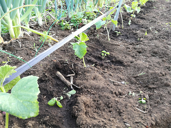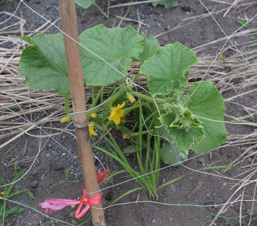 きゅうりのコンパニオンプランツサクの家庭菜園。