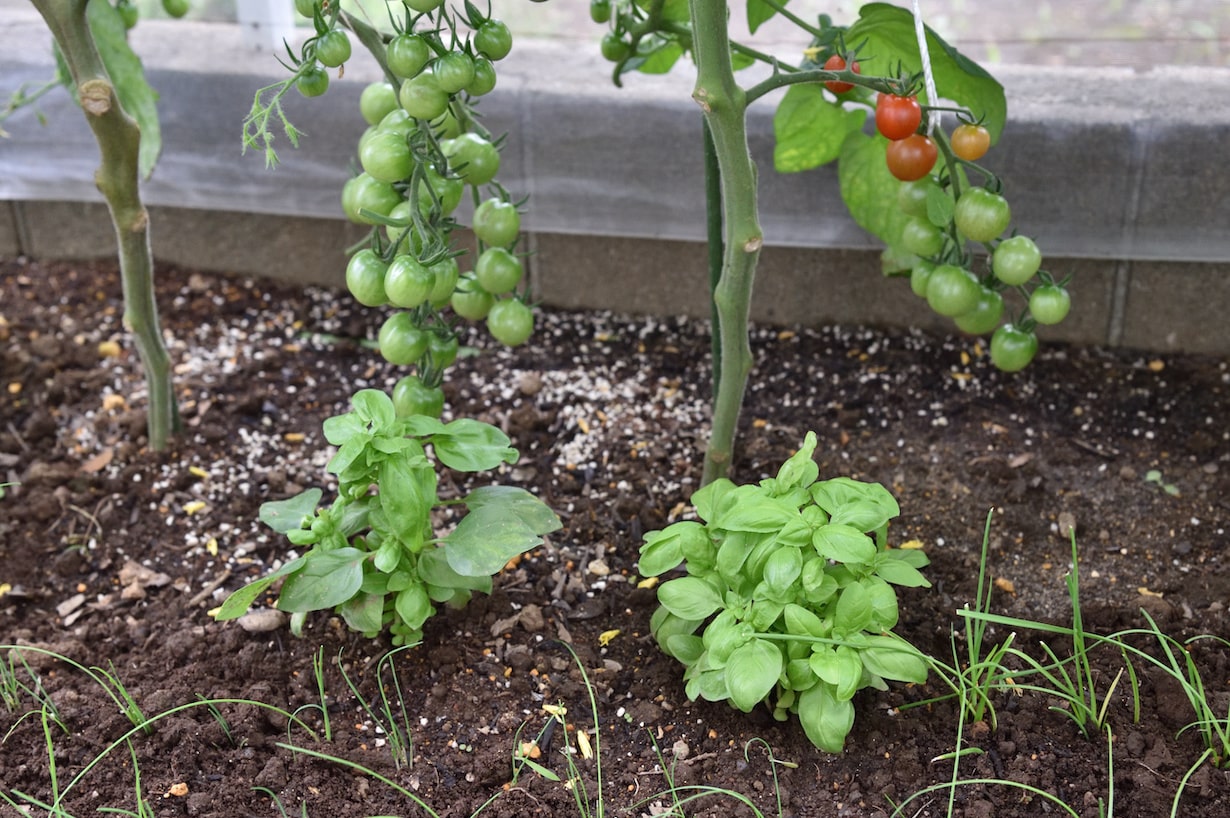 バジルをコンパニオンプランツとして菜 園 場 小山農園。