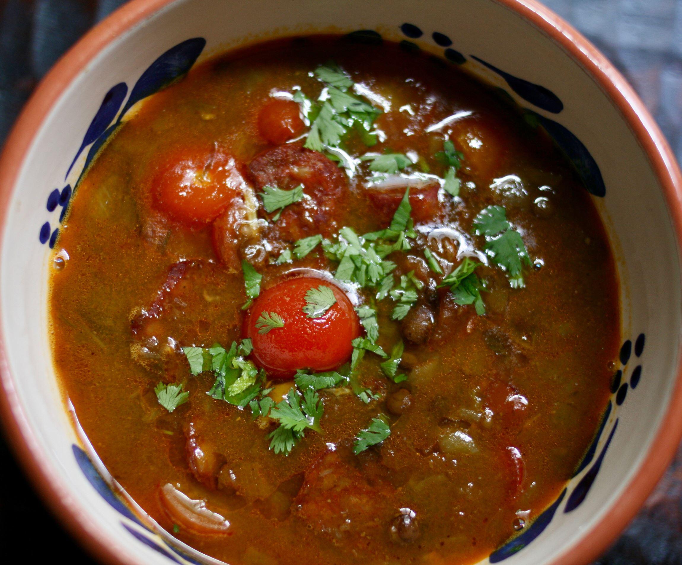 辻仁成さんのレンズ豆とチョリソーのカレースープ。
