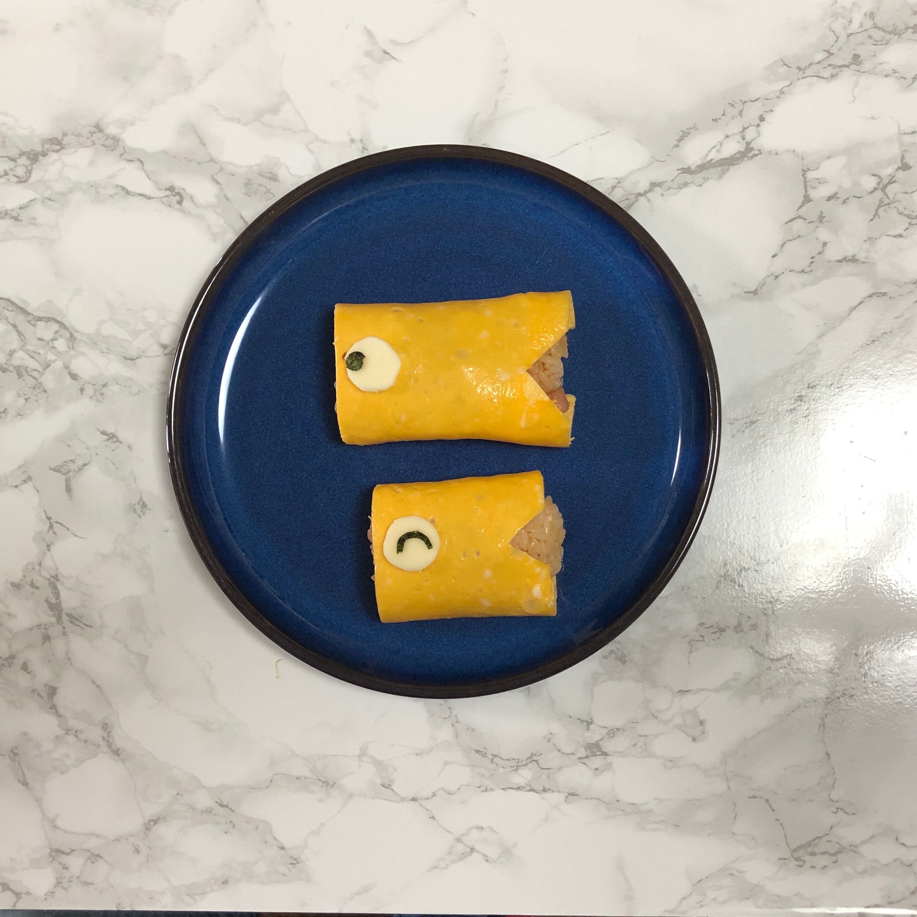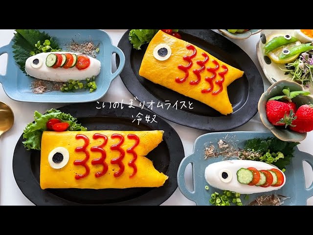 かぶと春巻&こいのぼりオムライス - YouTube。