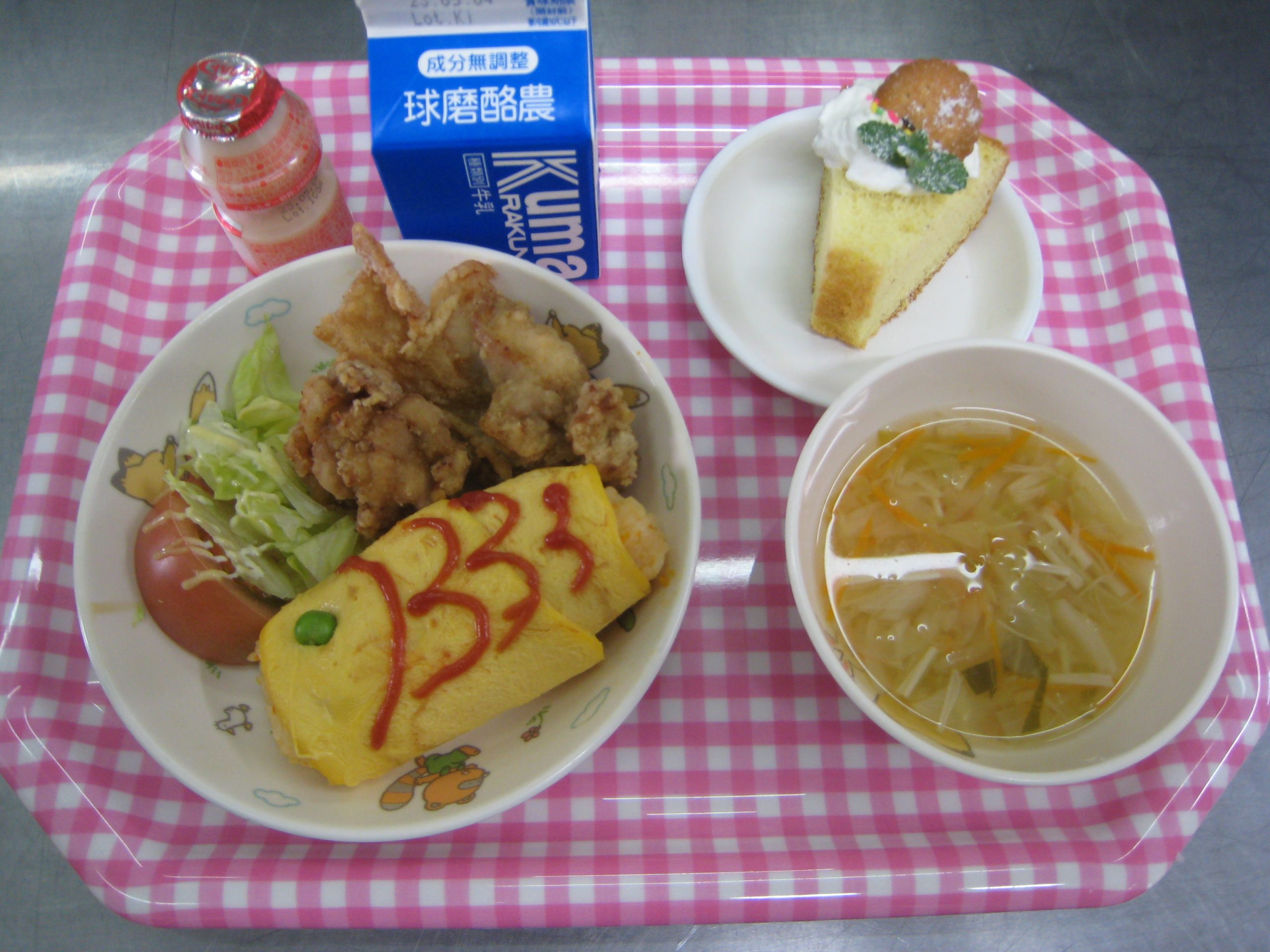 共励第二こども園 5月誕生日会 メニュー 鯉のぼりオムライス ウィングステック ポテトサラダ ウインナーとキャベツのスープ メロン おやつくまさんマフィン共励こども園保育園八王子誕生日会truehappinessforyourfamily。