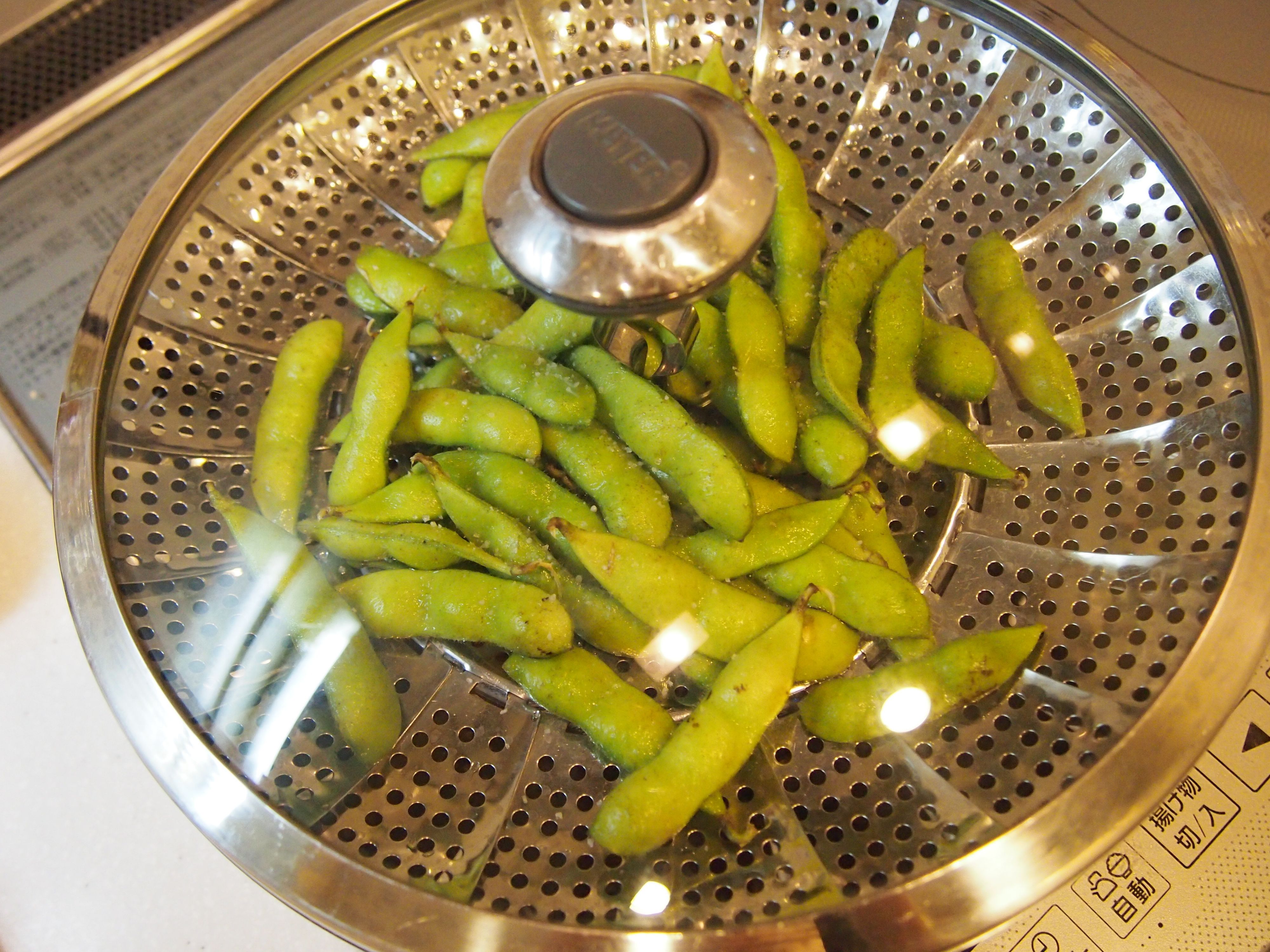 100均セリアの蒸し器が大活躍! 蒸し枝豆 無農薬お豆さん六甲道ブログ。