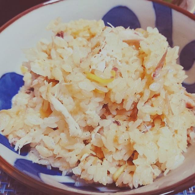 秋の炊き込みご飯SP『フライドチキン炊き込みご飯』 ①炊飯器にお米・水 2合分 しょう油 大さじ1 塩こしょう 少々 を入れて混ぜる ②ケンタッキー フライドチキンのオリジナルチキンを3ピースのせて炊く ③炊きあがったら、混ぜながらチキンをほぐして完成。