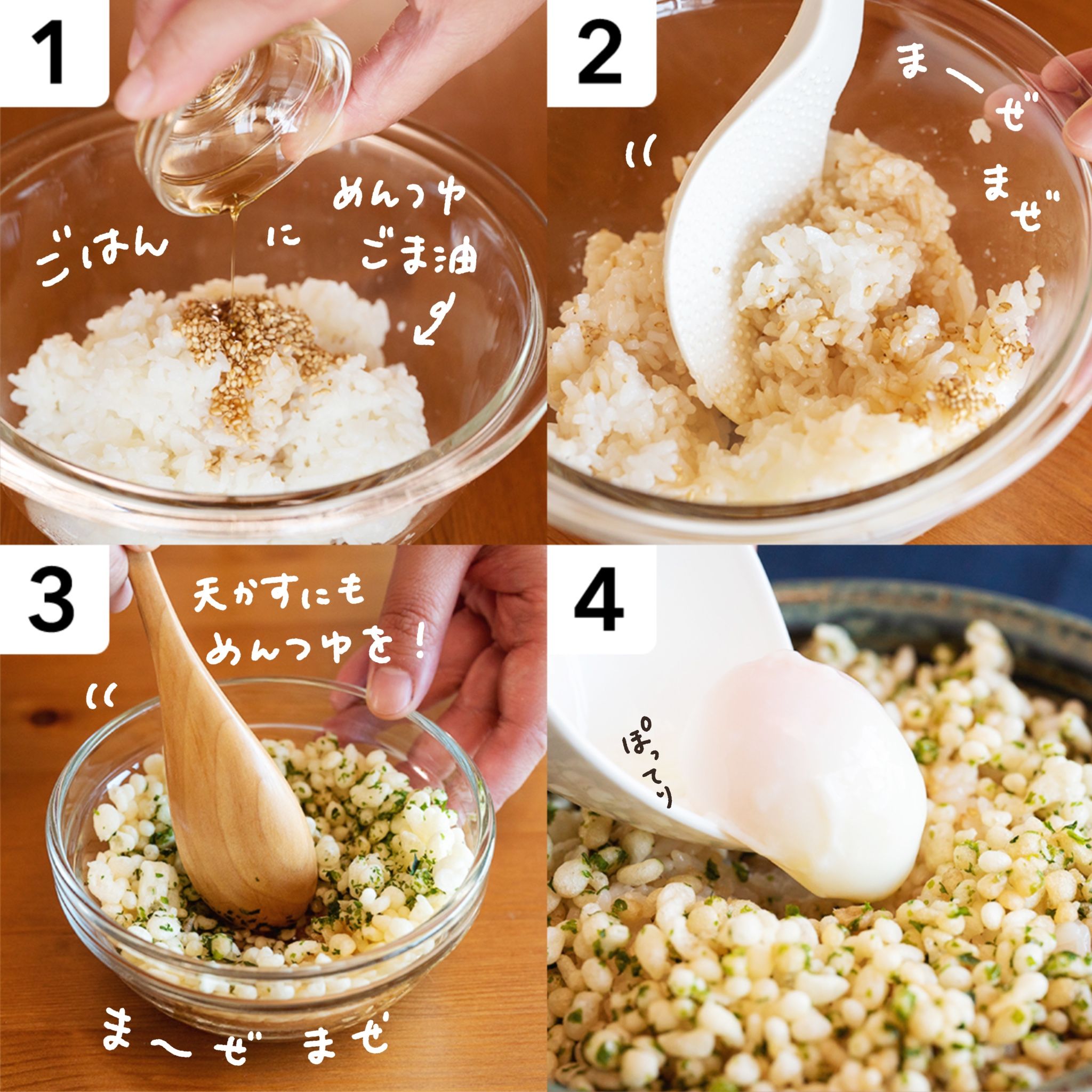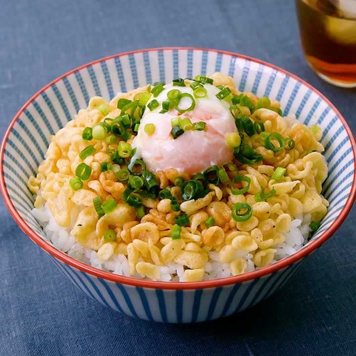 kurashiru クラシル時短 簡単料理・レシピon X: "ごはんが進みすぎる禁断の天かすレシピ😎🍚簡単やみつき 天かすでたぬきどんぶり①ごはん、めんつゆ、白いりごま、ごま油を混ぜる。 ②別のボウルで天かす、めんつゆ、青のりを混ぜる。 ③①の上に②、温泉。