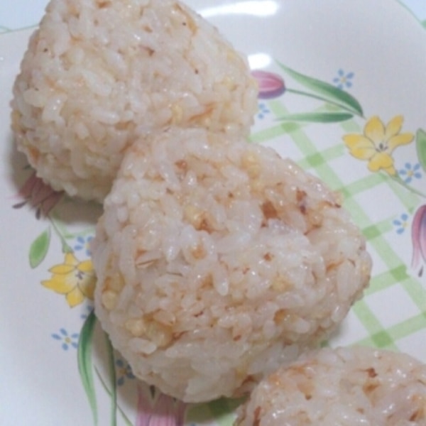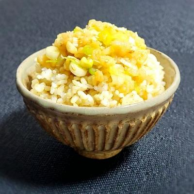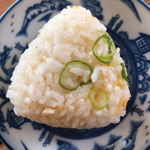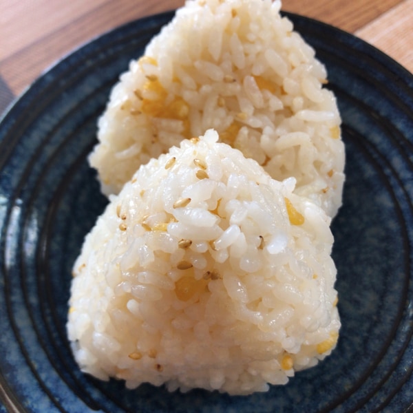 ごま油and塩 ねぎと天かすのおにぎり♪。