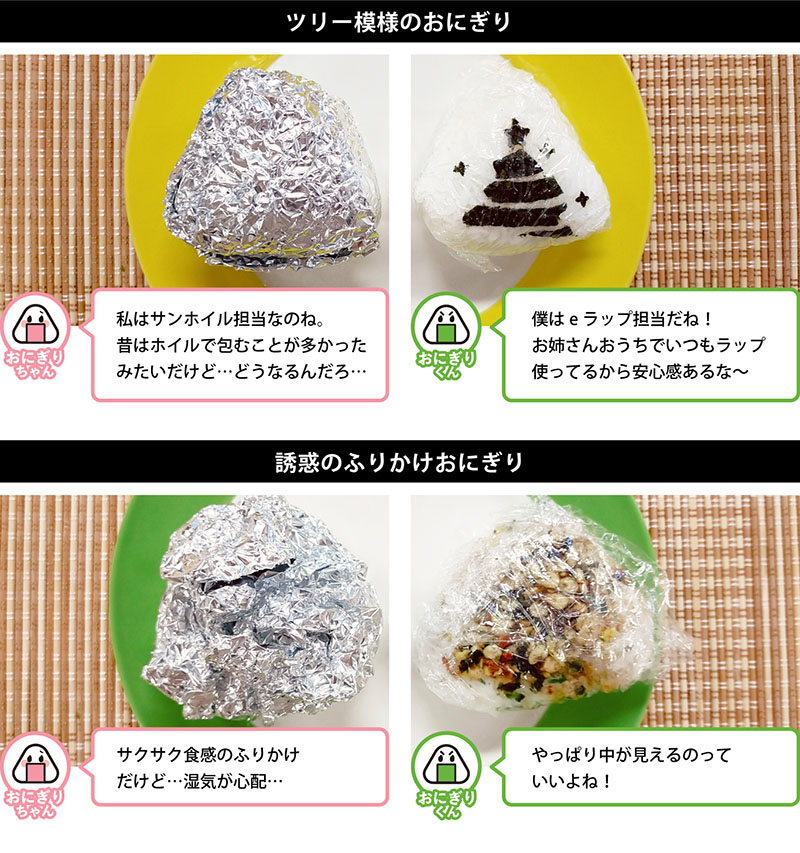 味付けのりもパリッと!ホイルおにぎりの包み方暮らしのアイデア東洋アルミエコープロダクツ株式会社。