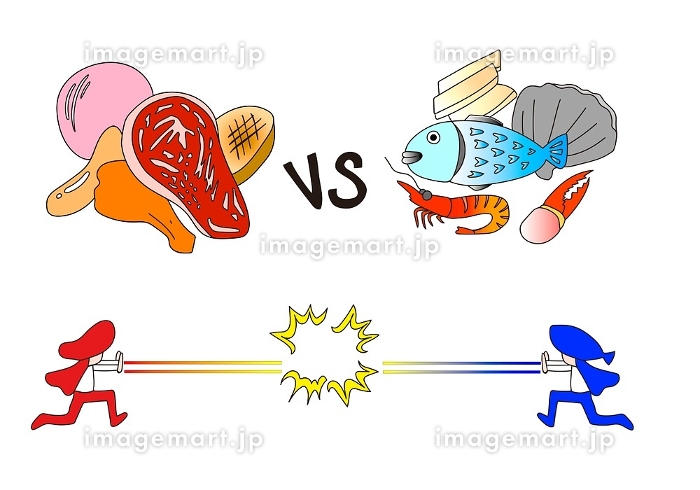 肉と魚のバトルのイラスト素材237903476 毎月1点無料 フリー のストックフォト イメージマート。