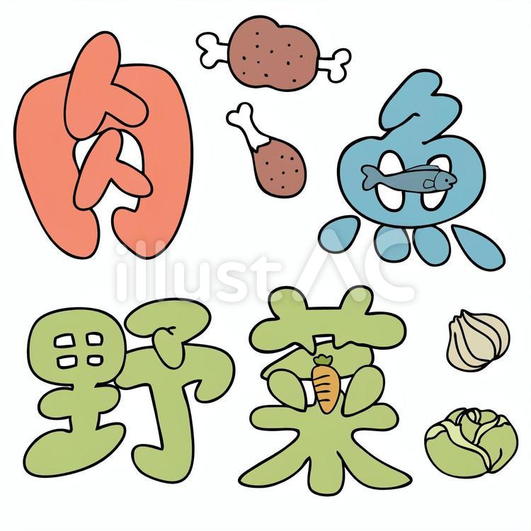 肉、魚と野菜の字イラスト - No: 880828無料イラスト・フリー素材なら「イラストAC」。