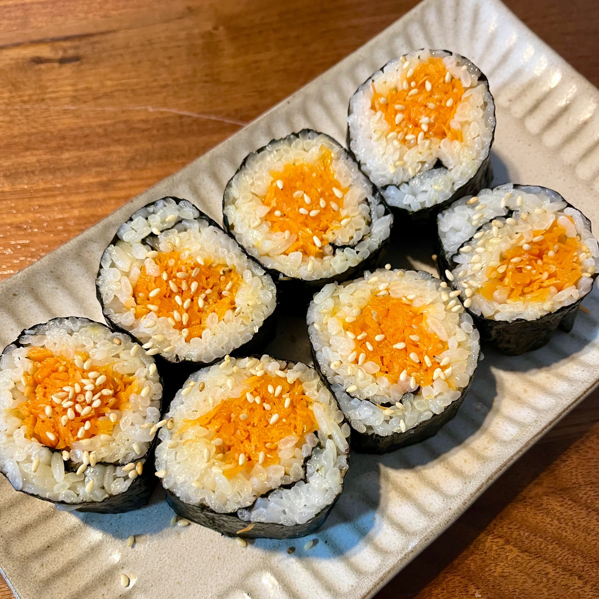 JA全農 NO RICE NO LIFE on X: "春にんじんナムルのキンパ。 人参 を千切りにして、塩を振り、水気をよく絞ってから、ごま油、塩、胡麻を和え、ナムルをつくります。海苔にごま油と塩を混ぜたご飯をのせ、人参ナムルを山盛りにのせて、巻きます。人参はスライサーで。