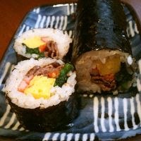 自家製ナムルがたーーっぷり入った!4種類の「贅沢キンパ」! – 小さな韓国 あぷろ-東京浅草店。