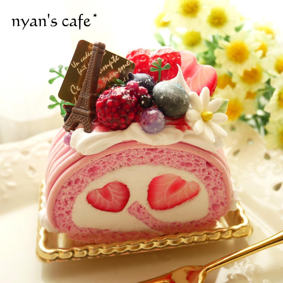 ☆あや☆様 フェイクスイーツデコ◇ハート苺が可愛い♡苺モンブランロールケーキ◇ - メルカリ。