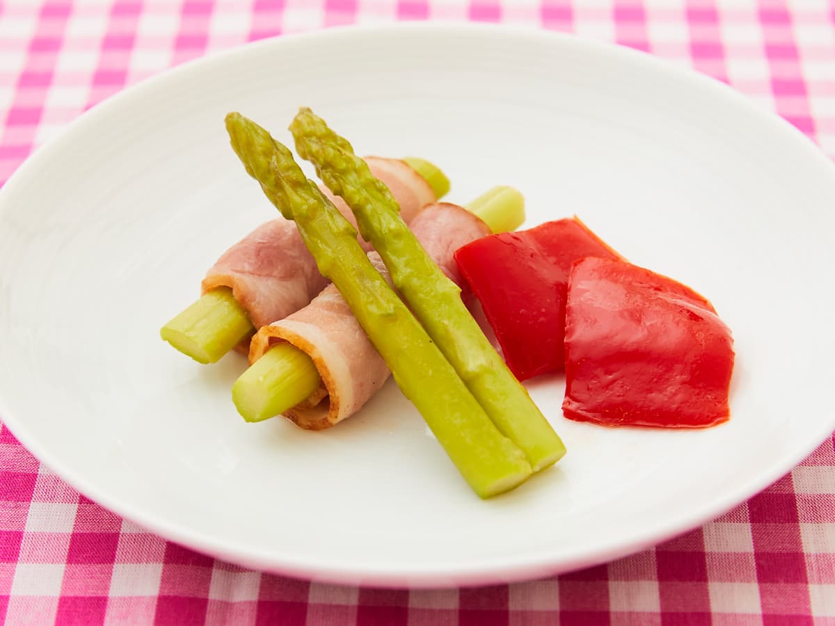 アスパラ・パプリカ・ベーコンのバター蒸し。
