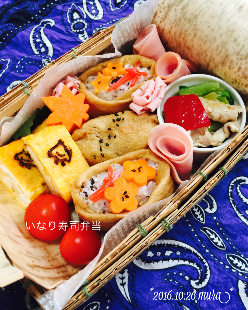 秋の運動会☆お弁当2018「海鮮いなり寿司!と好きなものいろいろ」昼下がりのカフェで眺める、スィーツ、パン、旅、グルメの雑誌みたいな日常。