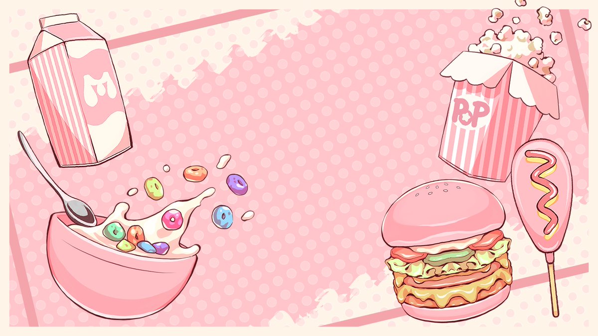 ピンク色を基調としたポップな食べ物のイラスト背景です。 ご使用の。
