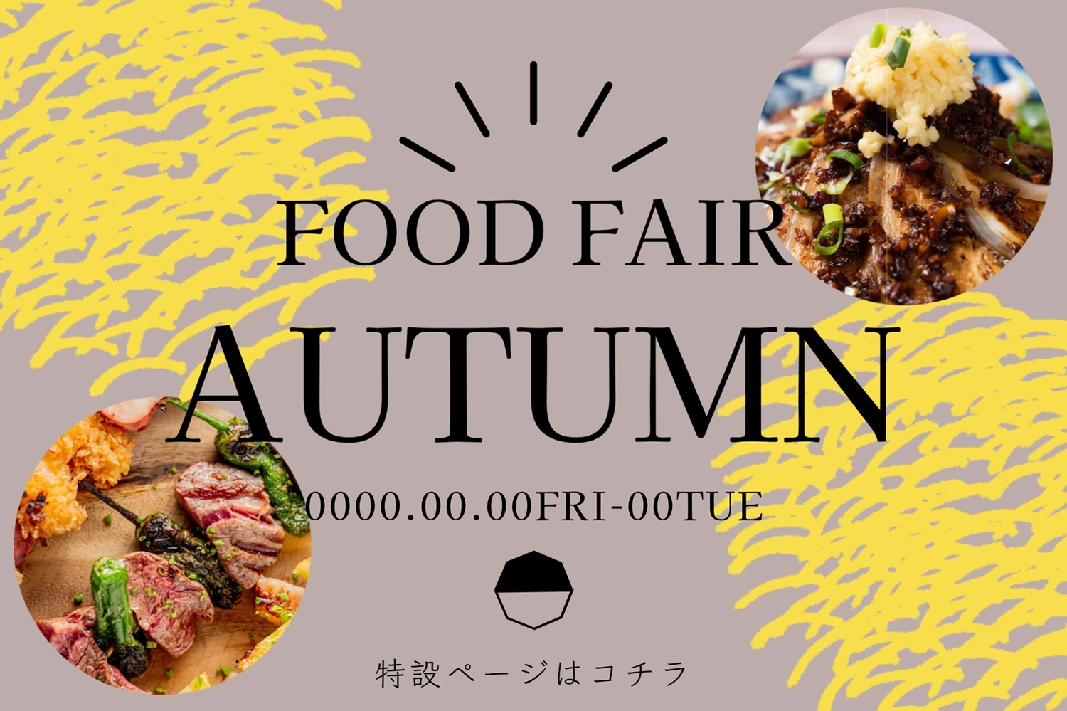 灰色ベースにポップなワンポイント効果の入った秋食向けバナーの無料バナーテンプレート 16297 - デザインAC。