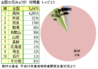 都道府県 ミョウガ 茗荷 の産地・生産量ランキング。