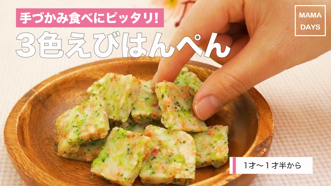 離乳食1才から 電子レンジで簡単!3色えびはんぺんママ 赤ちゃん 初めてでも 簡単 レシピ 作り方。