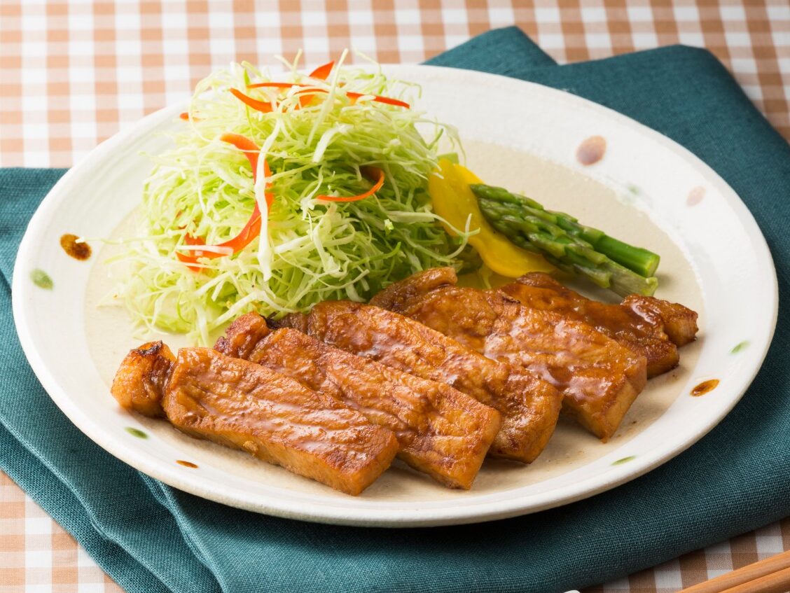 やわらか♡豚ヒレブロックのにんにく照り焼き。