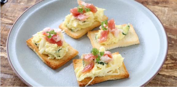 丸大食品レシピパンチェッタとオリーブのブルスケッタ。