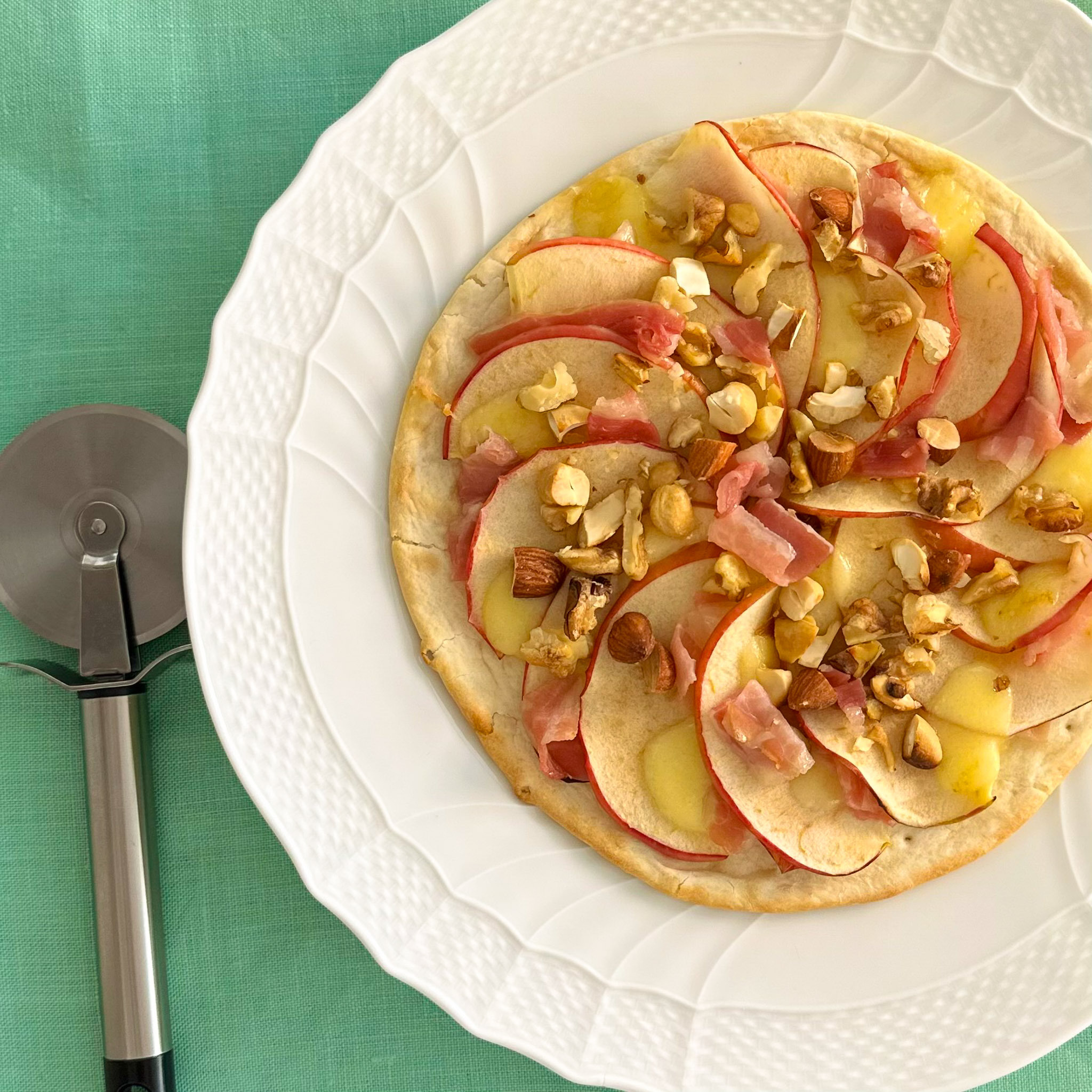 パンチェッタとホットフルーツのピザ。