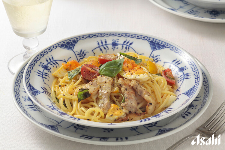 塩麹パンチェッタと卵のカルボナーラ。