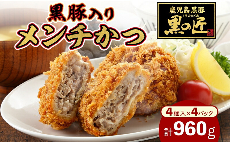 ふるさと納税 メンチカツ 黒の匠 黒豚入り 60g×16個 鹿児島豚 豚 黒豚 旨味 コク 丹念 きめ細かい 匠 生パン 焼く コショウ 肉汁 夕食サクサク 玉ねぎ 冷凍便 贈り物 団らん みずほ野 神奈川県 平塚市 ふるさと納税 鹿児島市 鹿児島県産黒豚入メンチカツ10枚パック K219。