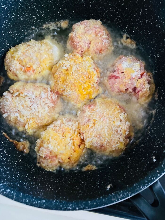 冷凍してあったハンバーグでメンチカツas。